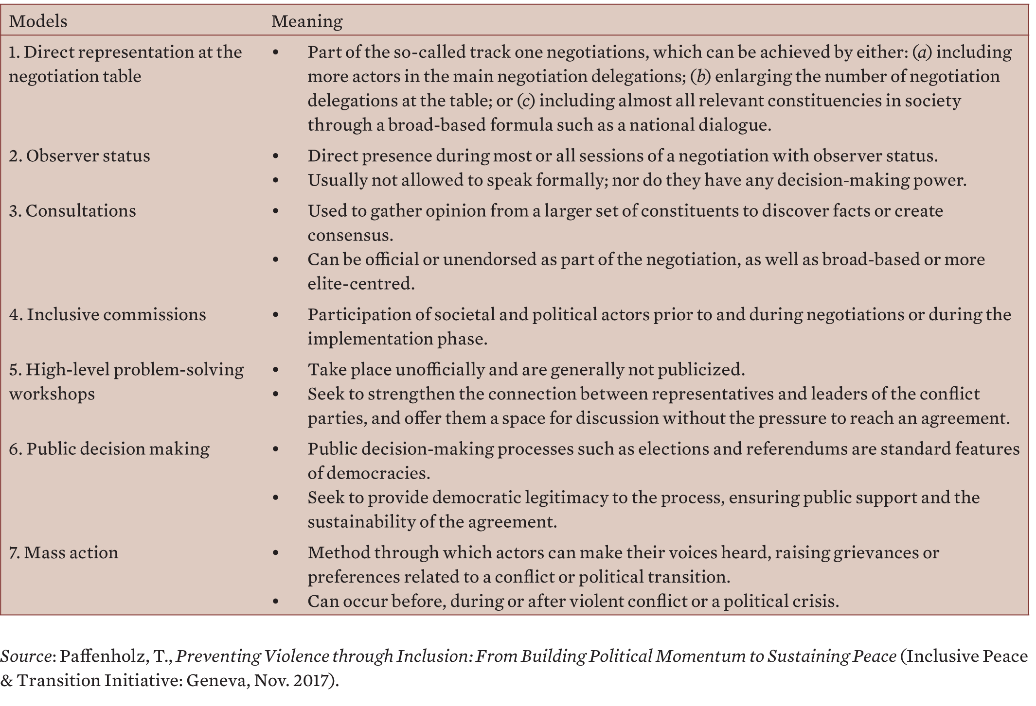 Table 1. Seven modalities of inclusion in peace processes